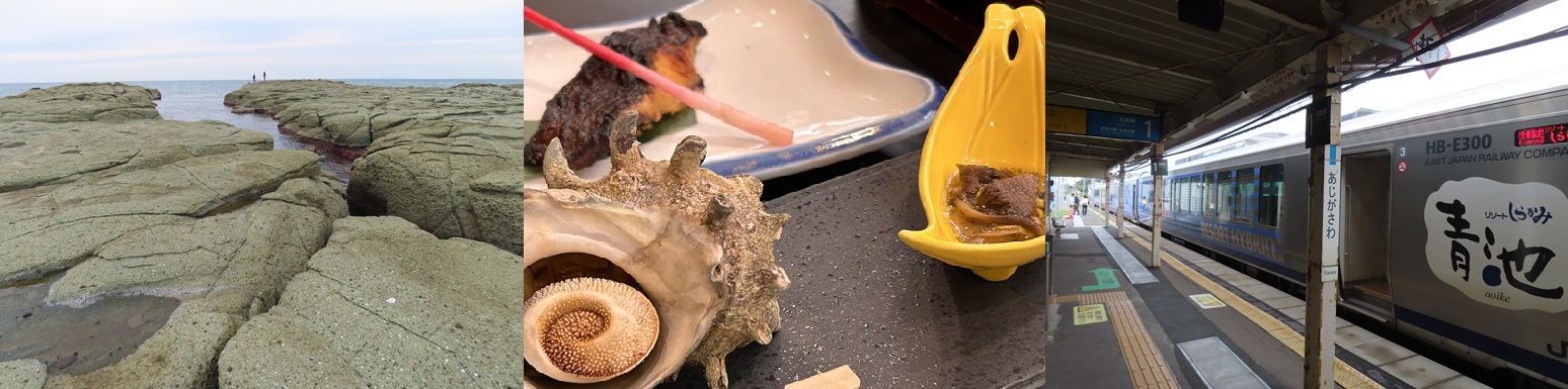 • 今回は深浦駅から鯵ヶ沢駅まで1区間(千畳敷駅は不停車)海側の窓側席が予約できたので車窓を堪能。