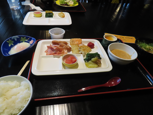• 朝食はバイキング。とろろ汁など素朴な味がうれしい。