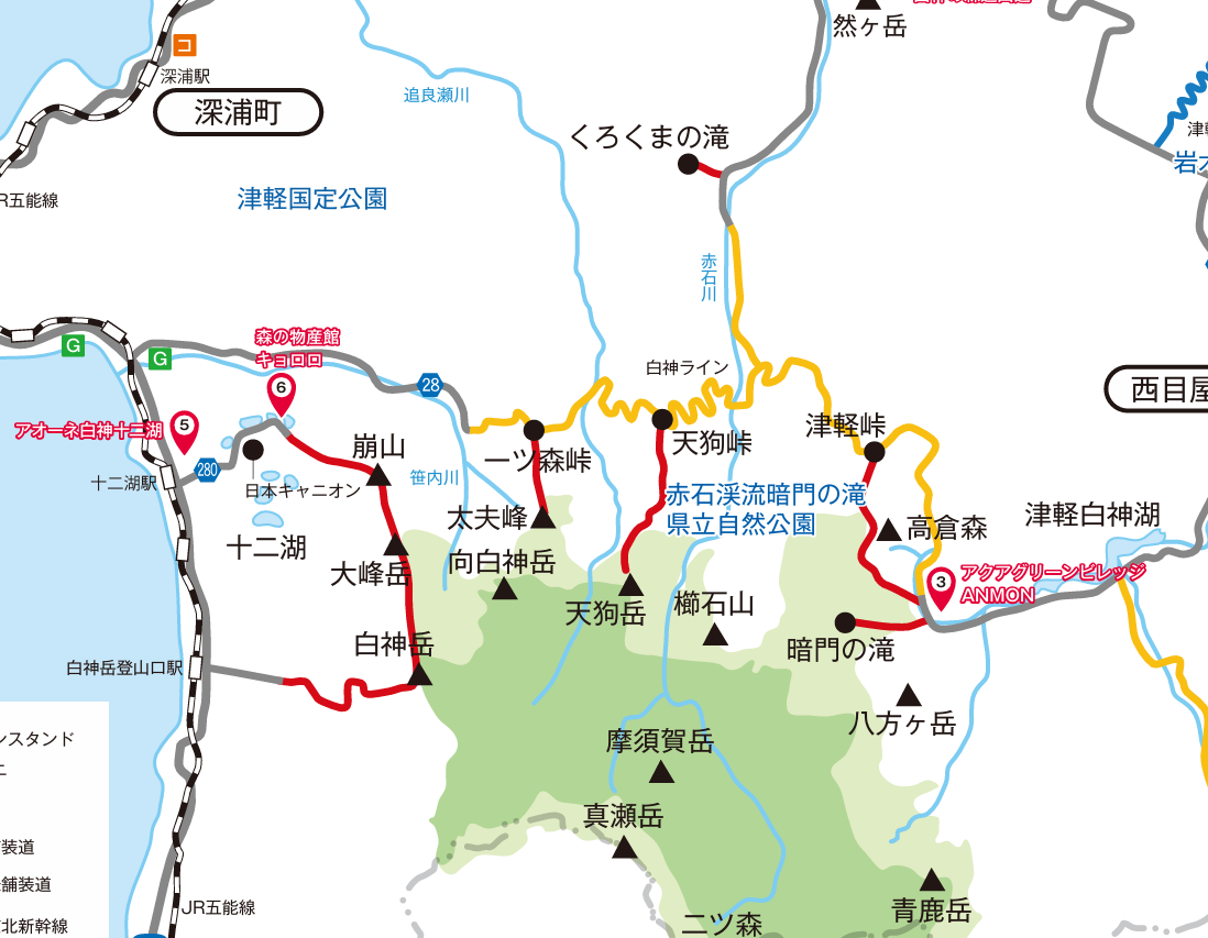 • 白神山地の東側入口にあるアクアグリーンビレッジANMON(冬季閉鎖)