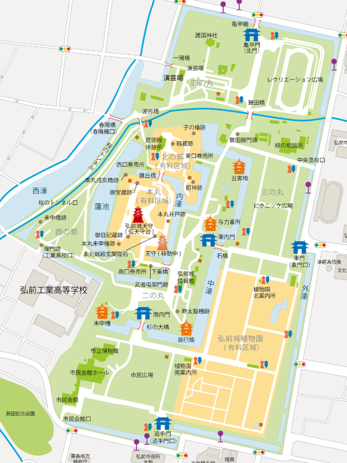 • 弘前公園の中にある江戸時代に建設された天守が現存する城郭、国の重要文化財