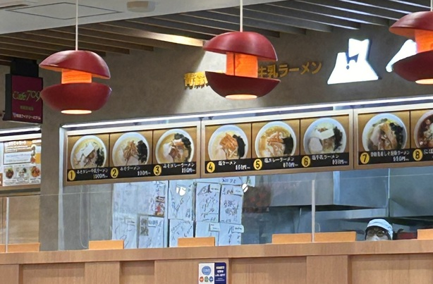 • 左のブースで食券を買い、右のカウンターで受け取る