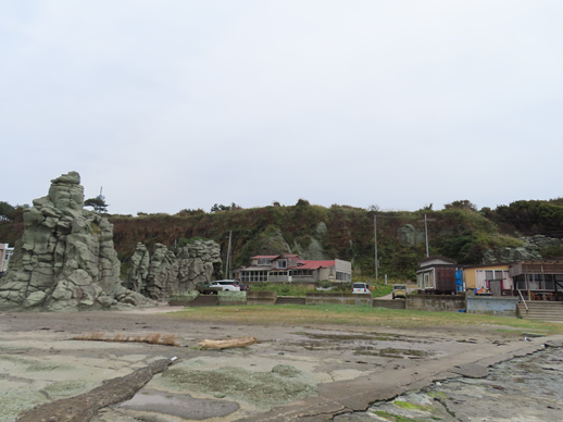 • この岩棚に奇岩が連なる景観がわずか200年前の地震で隆起してできたというのが驚き