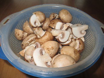- マッシュルーム1/2もしくは1/4に切る。