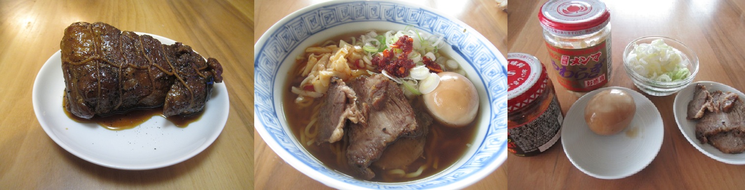 チャーシューを作る過程でできるタレやスープを使って作ったメニューを2種類追記します。
