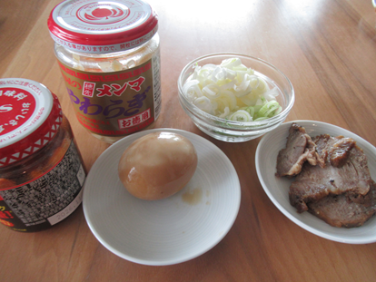 - 作ったチャーシュー3切れ(冷たい場合レンジなどで少し温めておく)