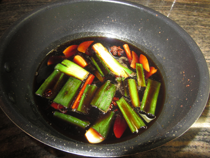 - 漬けダレを準備する。鍋に漬けダレの材料を全部入れ火にかけ、ひと煮立ちしたら火を止めそのまま冷ます。