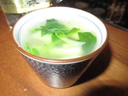 野菜はチンゲン菜を使うのがミソ。チンゲン菜の香りがスープにとても合います。