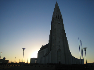 町の中央には湖に張り出した市庁舎、これが?と思うような小さな国会議事堂、海岸の広場にあるステンレスの彫像。などいろいろ見所はありますが、一番は、高い建物が皆無のレイキャビクにあって小高い丘の上でひときわ目立つハトルグリムス教会です。その姿は低い陽の光を背景に 街を支配するような威容を誇ります。エレベータで70Mある鐘楼に上がるとレイキャビクの360度の景観が楽しめます。(エレベータは有料で奥の売店で支払う)ここからの眺めはレイキャビクの小ささと美しさを堪能させてくれます。パイプオルガンがこの教会の自慢で、今回はたまたまクリスマスシーズンに向けたリハーサルを行っており、壮麗な響きを味わう幸運にめぐり合わせました。