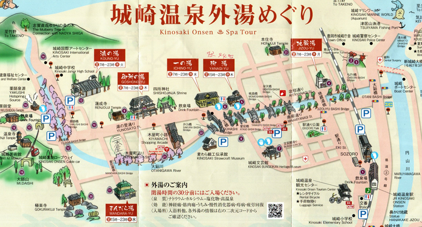 - 温泉街の一番はずれ、城崎温泉駅近くにある。一番空いている外湯。