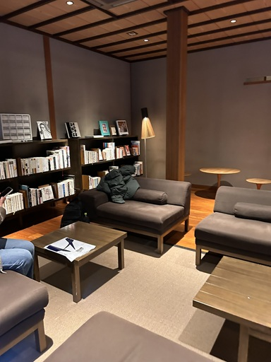 - コーヒーを自由に飲めるラウンジはライブラリーとなっており興味深い本が並んでいる。ここで見つけた田山花袋「日本温泉巡り」古本をアマゾンでつい買ってしまった。