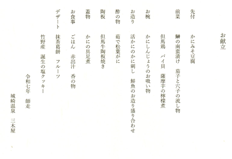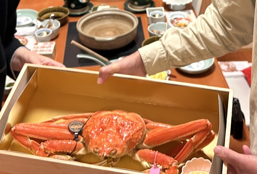 - 漁の季節には是非ずわいがにを味わいたい。但馬牛も有名。今回は「タグ付きがに使用!活がにのゆでがに・かに刺しと但馬牛の会席」プランを選択