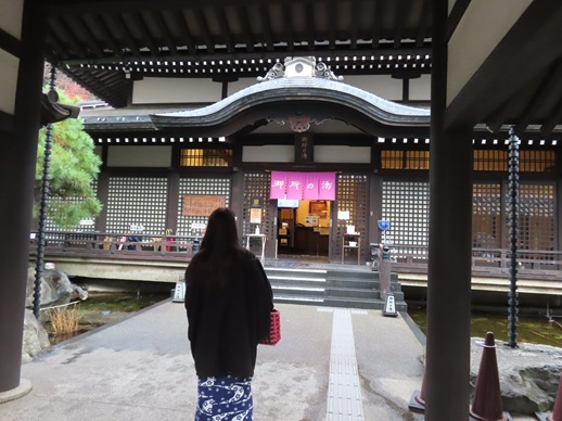 - 浴衣に暖かい丹前も重ね着できるように準備され寒い冬でも浴衣で外湯めぐりができる。テトは下駄をはきなれていないので地蔵湯までの道のり歩くのは疲れた。