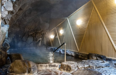 - 天然の岩盤を削って作られた洞窟風呂が独特の雰囲気(写真は公式ページから)