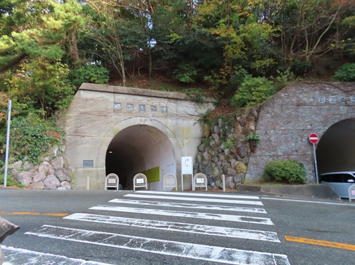 - トンネルを抜けると正面がカフェ・レストランとショップ、左に曲がると入口