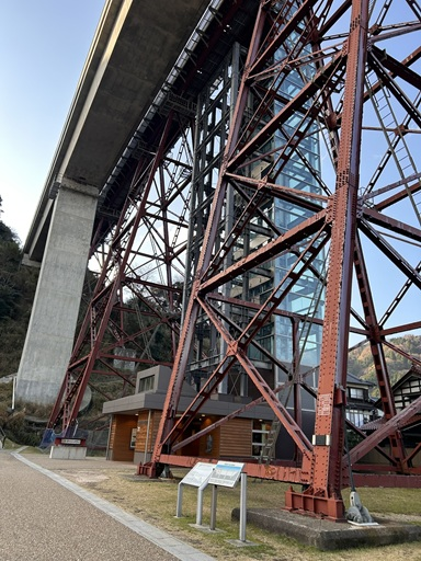 - 平成22年の架け替え後、旧鉄橋の一部を保存しエレベーター「余部クリスタルタワー」が設置されて展望施設として開業(エレベーターは無料)