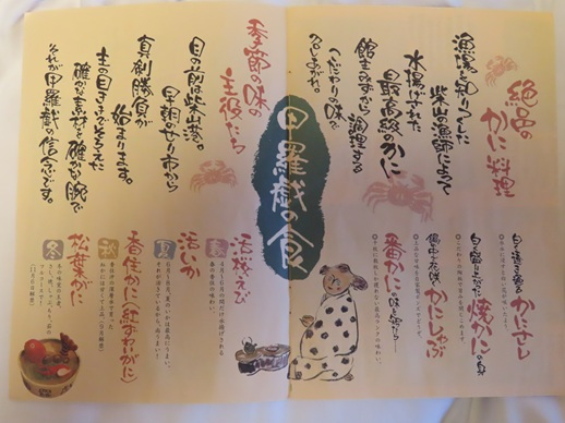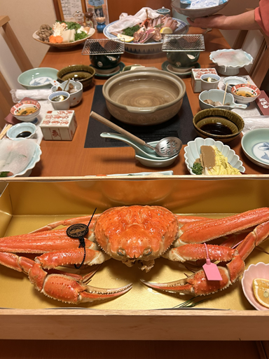 - 夕食は一生に一度の体験と、「1番かにゴールドタグ 柴山かに」コースを選択(希少なので準備できない場合もあるとのこと)