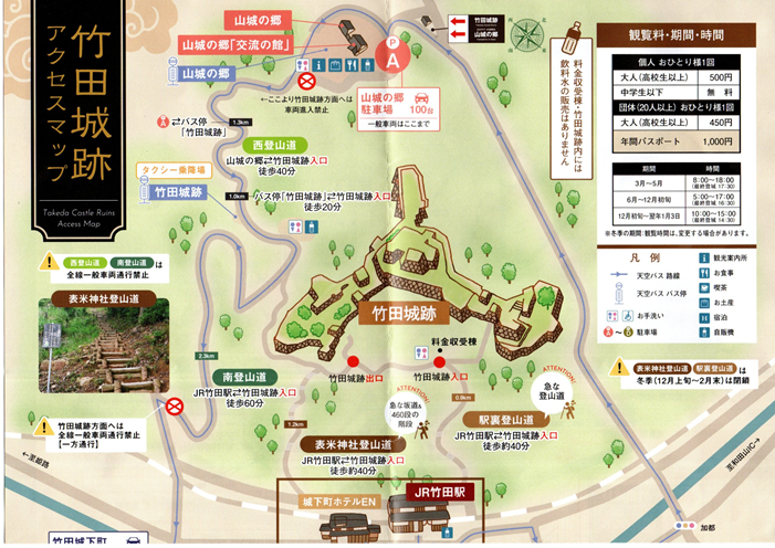 - 竹田城跡見学では一般車はここまでしか入れない。