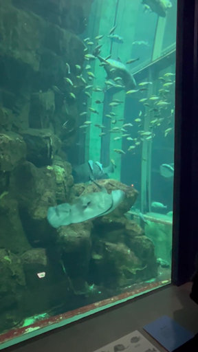 • 日本一の深さをほこる水槽には大型のエイも悠々と泳ぐ