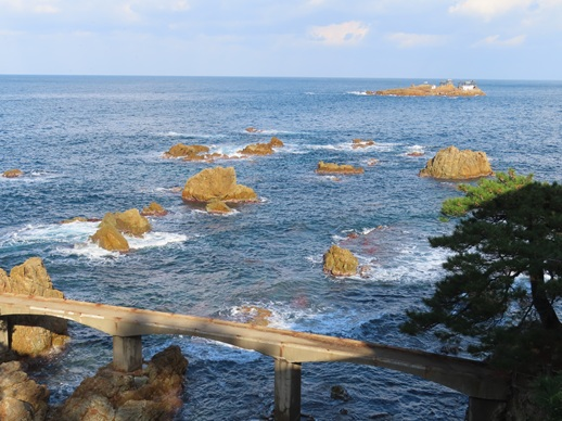 • 実際の鉄道駅に併設された天望スペースからは「余部鉄橋」の表示の向こうに荒々しい日本海の景色が望めます。