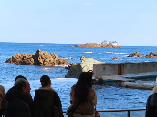 • アクティビティの予約センターのある「磯だまり」エリアからはイルカの泳ぐプールの向こうに真っ青な日本海が美しく輝きます。
