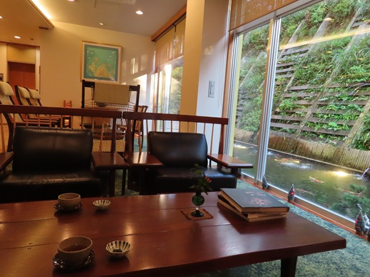 • ロビーからは錦鯉の泳ぐ池も見えモダンで心地よい