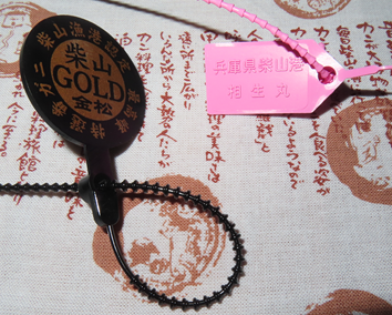 • 記念に持ち帰ったゴールドタグと柴山漁港に水揚げされた印の相生丸のタグ