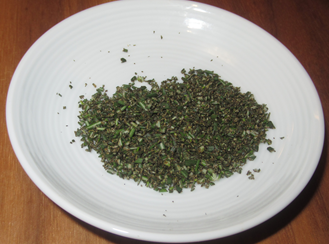 - ローズマリーの葉を枝から外してみじん切りにする。(これは結構根気がいりました)