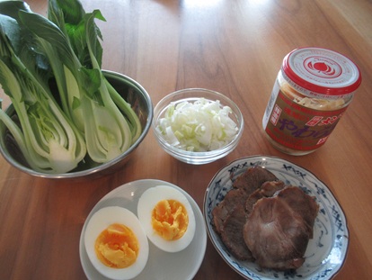 - 冷凍にしておいた自家製チャーシュー3枚(解凍する)購入品でも可。