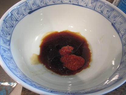 • 温めた器にスープの素と豆板醤を入れる。