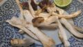 - 今回は刺身用の鯛の柵から幅2cmほど2切れ切りを土瓶に入れる。