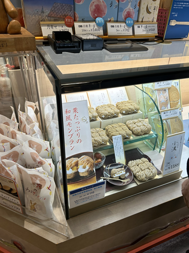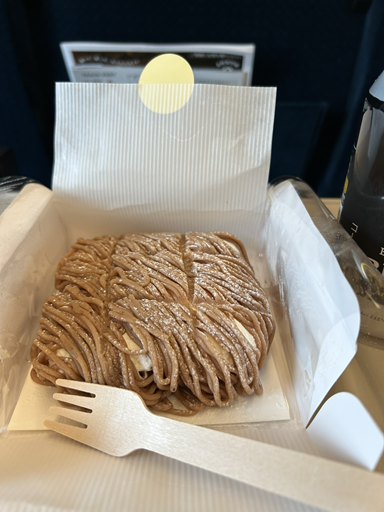 - 恒例の「和菓子屋のモンブラン 小波」で旅を始めます。控えめな甘みがたまりません。