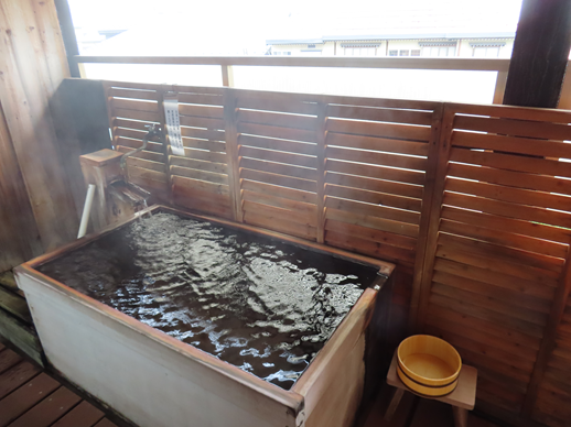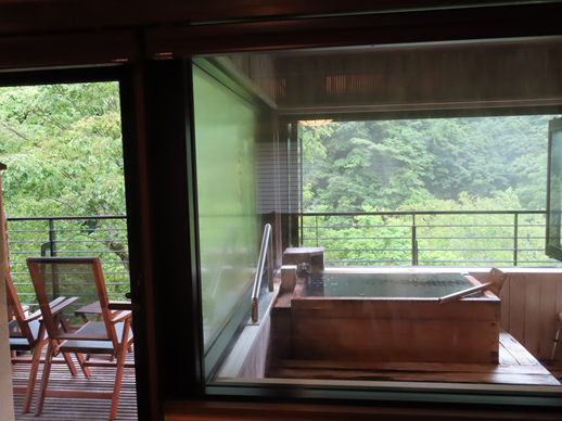 - 2泊目の宿「信州山田温泉 山田館」の露天風呂付き客室「藤」の露天風呂