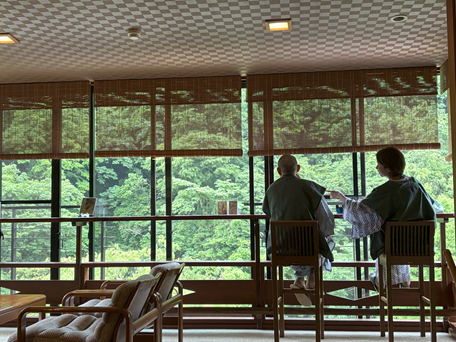 - 朝はロビーでコーヒーを片手に眼前の緑に包まれくつろげる