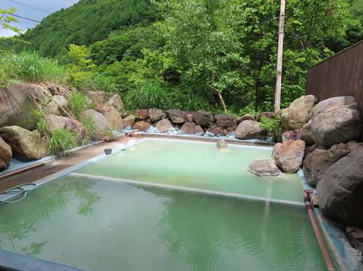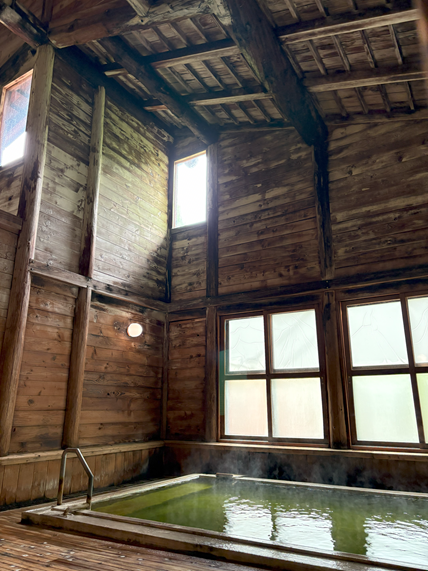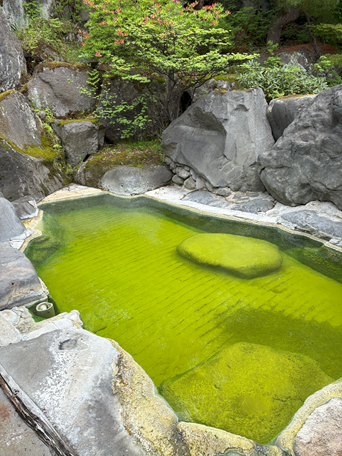 - 温泉好きに有名な「熊の湯ホテル」の鮮やかな緑色の湯