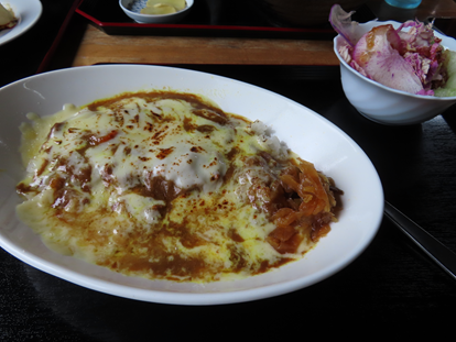 - 焼きチーズカレー、チーズが香ばしくカレーの風味とともに食欲をそそる