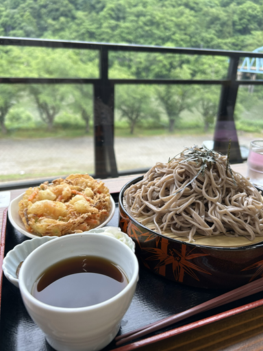 - 気持ち良い風呂の後は、近くの「健生庵 山愚」で十割蕎麦をいただく。