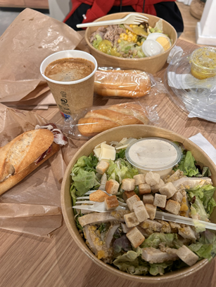 - ある日の空港での朝食。サラダは久しぶりでしたがハムバケットにコーヒーで2人分約1万円!